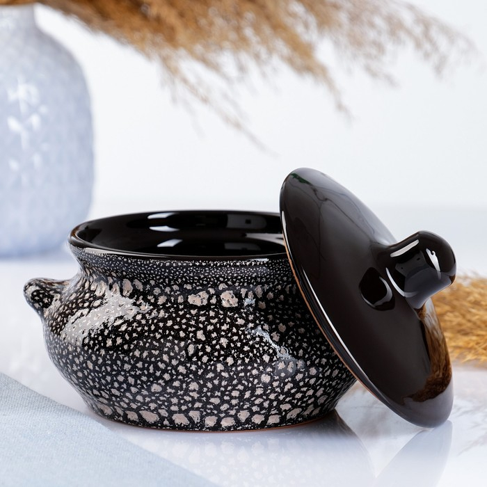 Горшок керамический для запекания "Лакомка" 0,5л / 13х9,5см, мрамор
