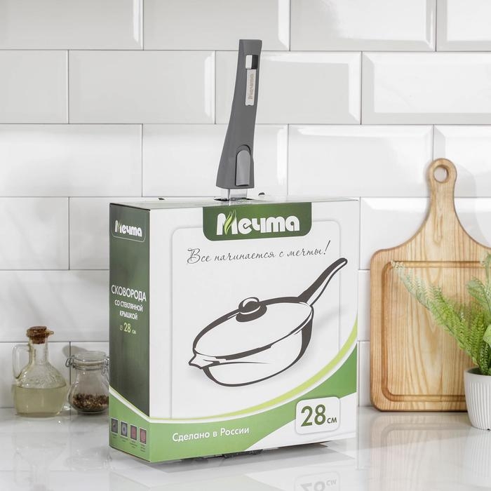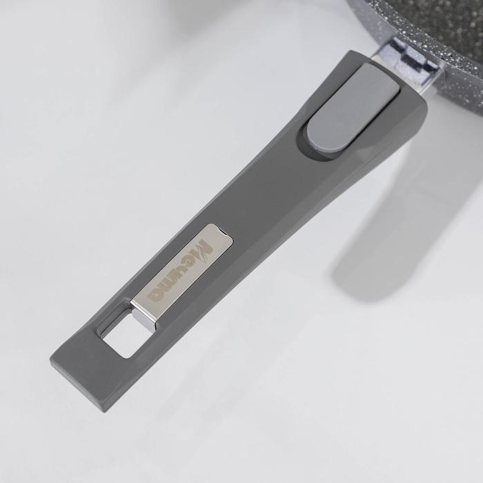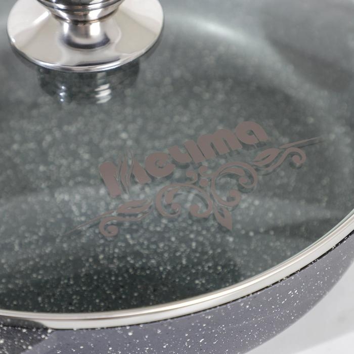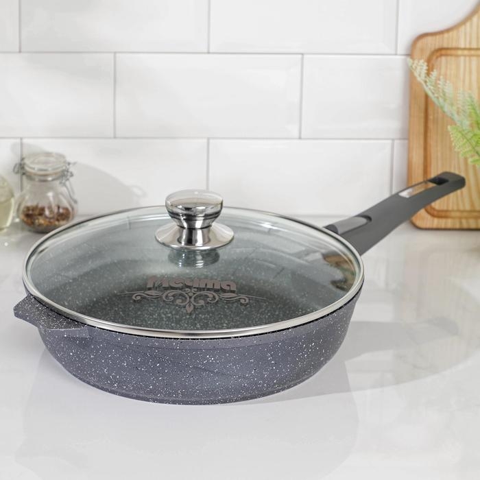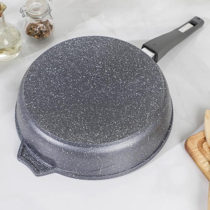 Сковорода «Гранит», d=28 см, стеклянная крышка, съёмная ручка, антипригарное покрытие, цвет серый