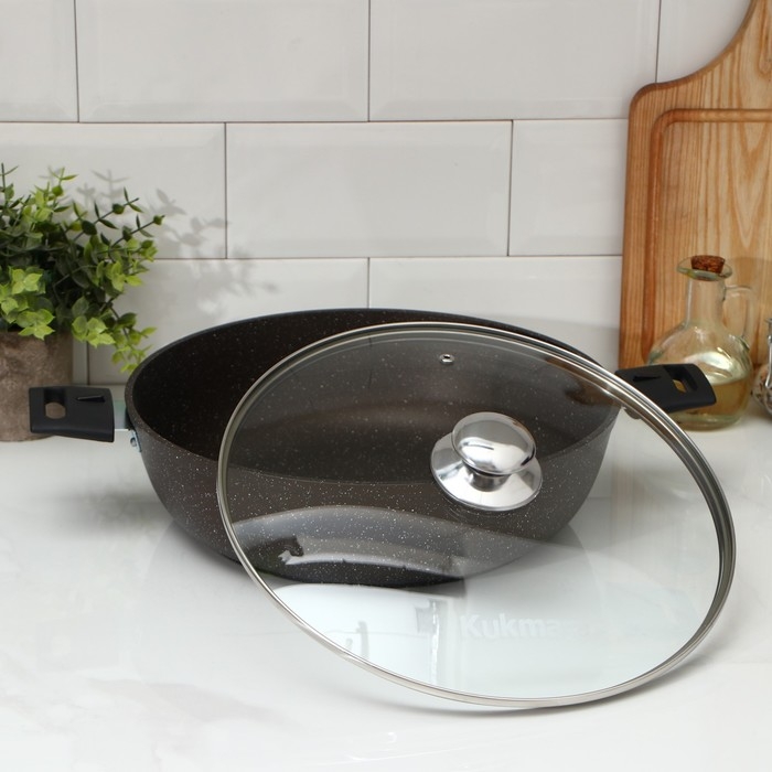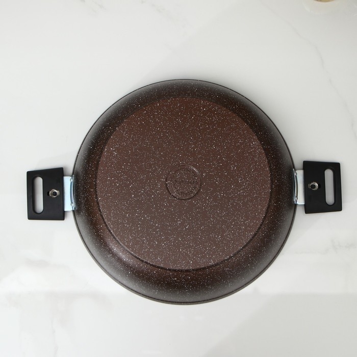 Сотейник, d=30 cм, h=8,5 см, съёмные ручки, стеклянная крышка, антипригарное покрытие, цвет коричневый