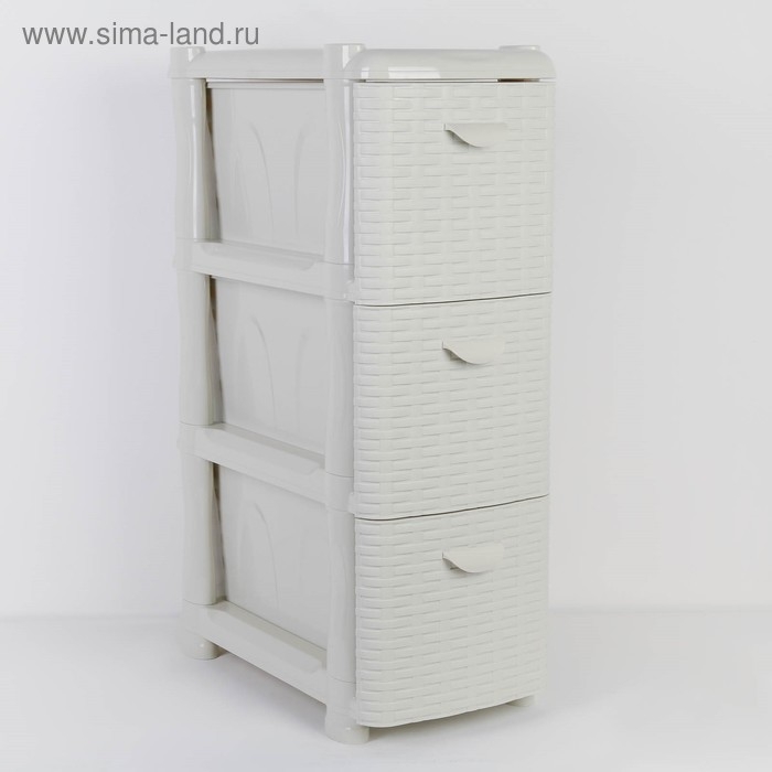 Комод узкий 3-х секционный «Ротанг», цвет белый