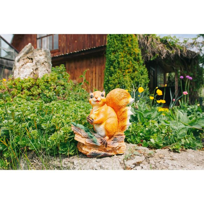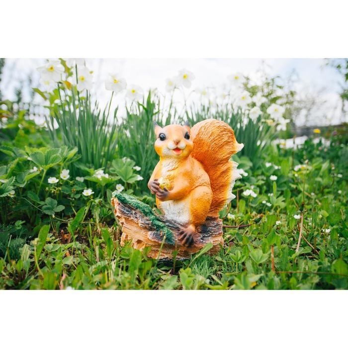 Садовая фигура "Белочка с орешком на пне" 25х12х23см