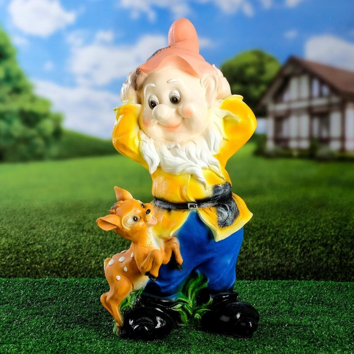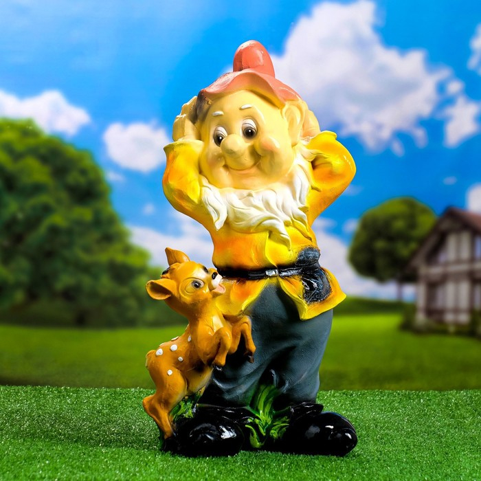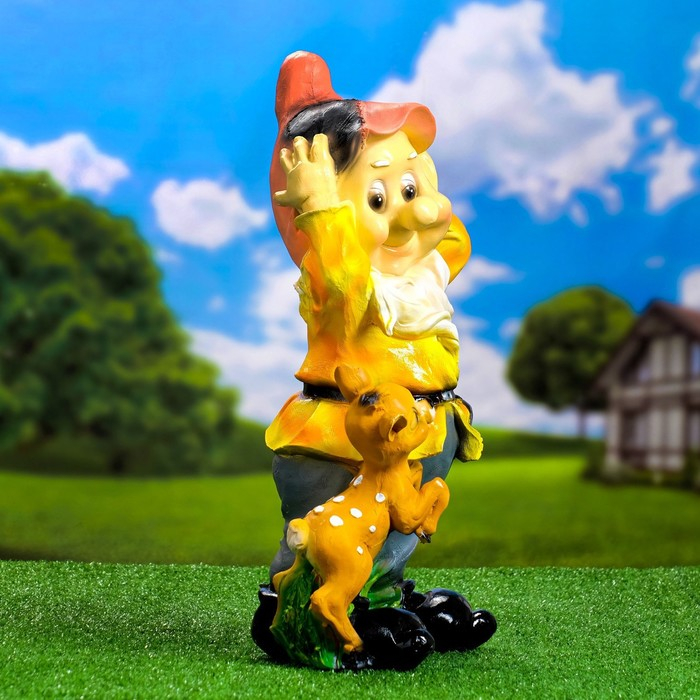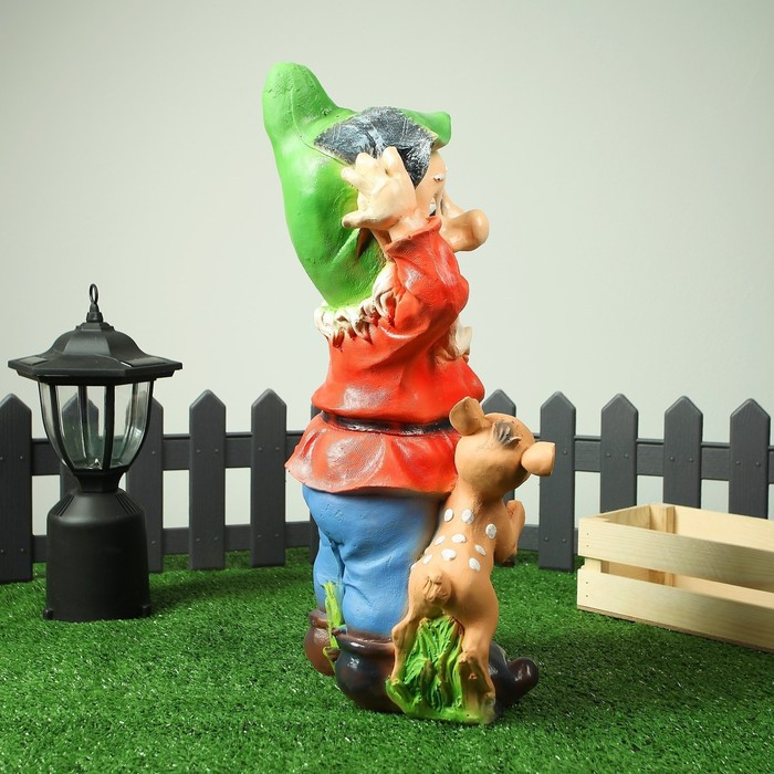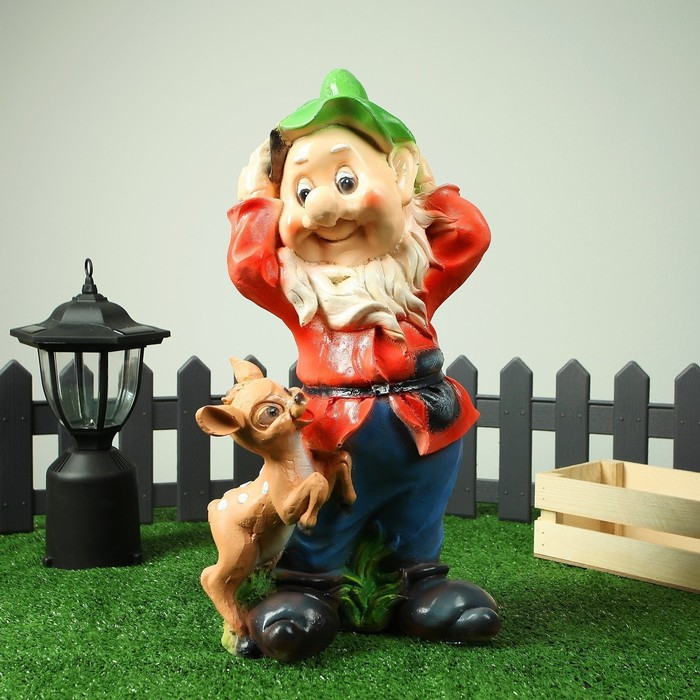 Садовая фигура "Гном с олененком" 19х26х50 см МИКС