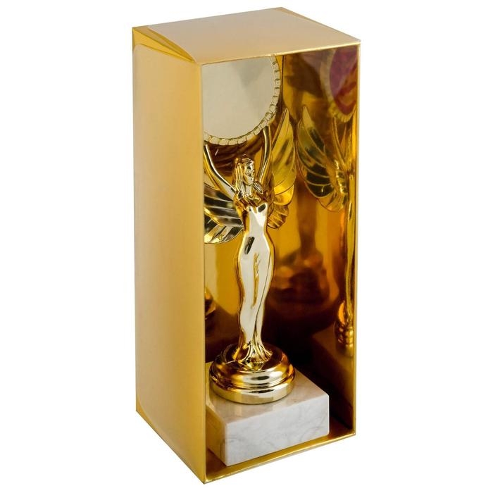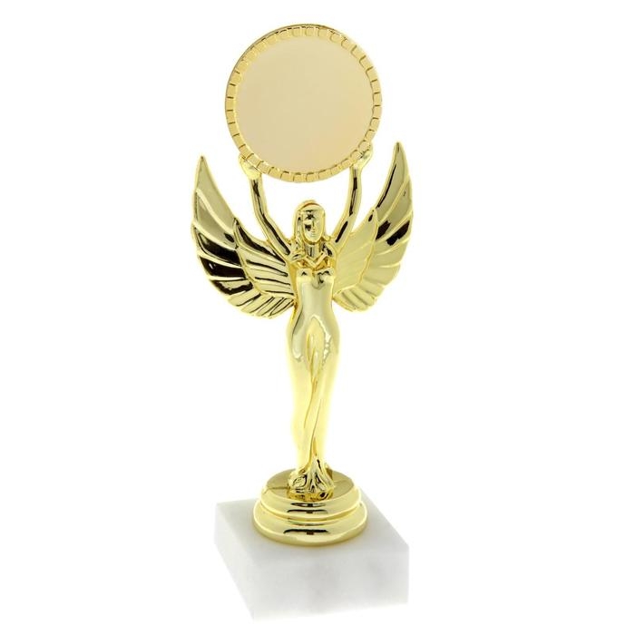 Наградная фигура «Ника с шаром», подставка камень белая, 18 х 7 х 5 см.