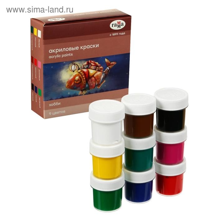 Краска акриловая, набор 9 цветов х 20 мл, Гамма "Хобби", морозостойкая, глянцевая, 3012197