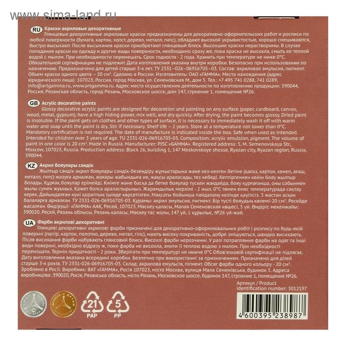 Набор акриловых красок «Яркость цветов», 12 цветов