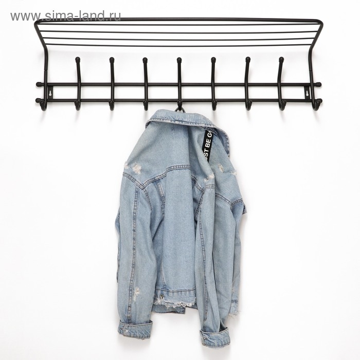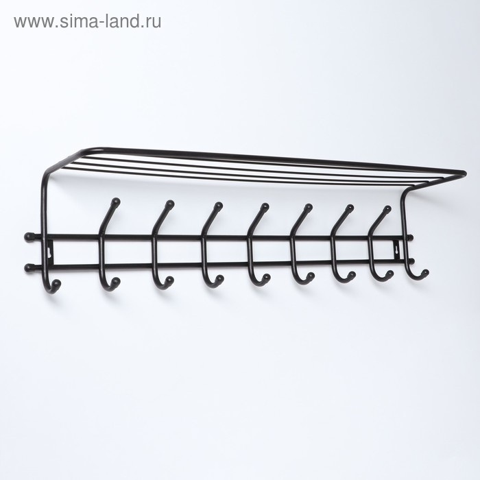 Вешалка настенная с полкой «Комфорт», 9 крючков, цвет чёрный
