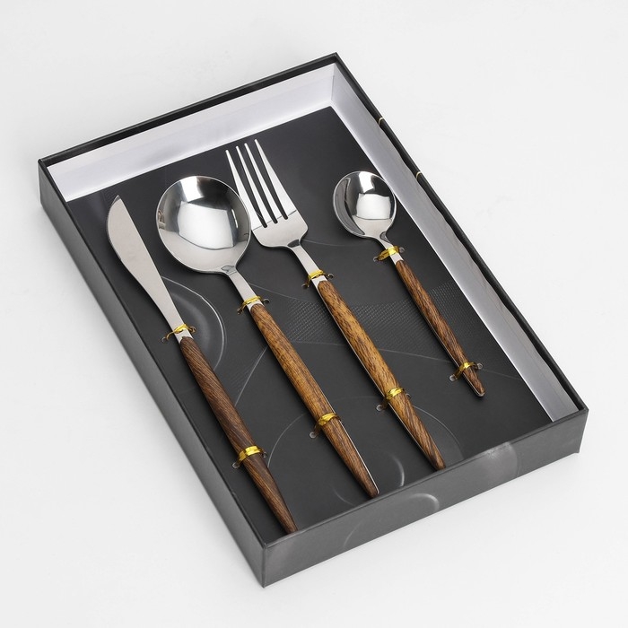 Столовые приборы из нержавеющей стали Magistro «Древо», 4 предмета, цвет металла серебряный