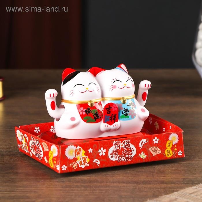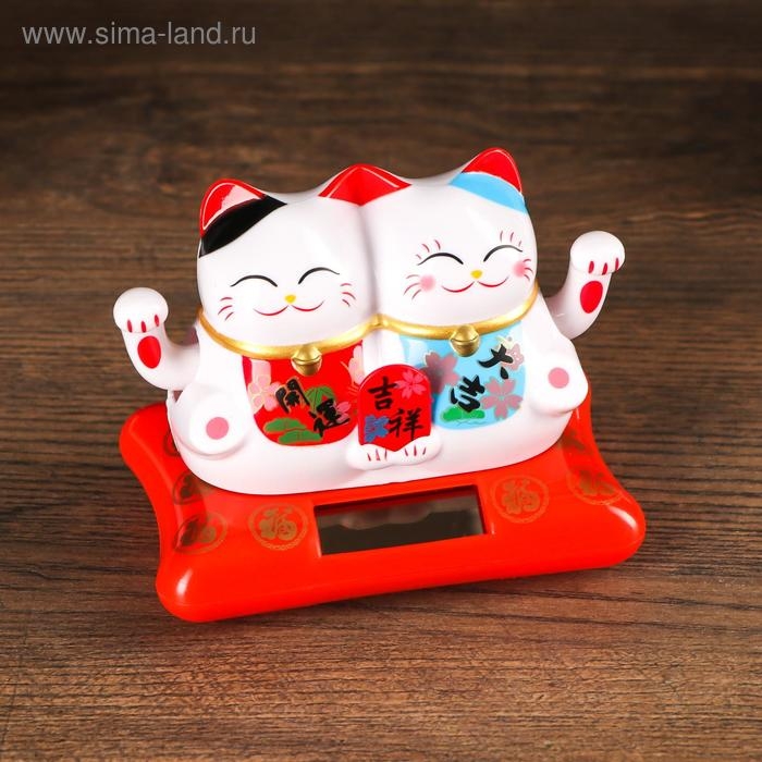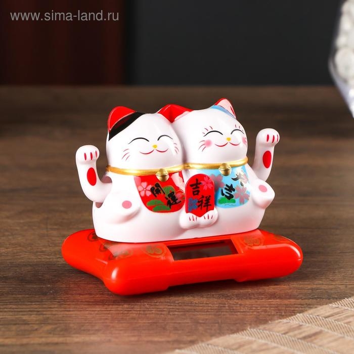Маятник пластик от солнечной батареи "Парочка котов Манэки-нэко с пожеланием" 6,5х8,5х5,5 см 50183