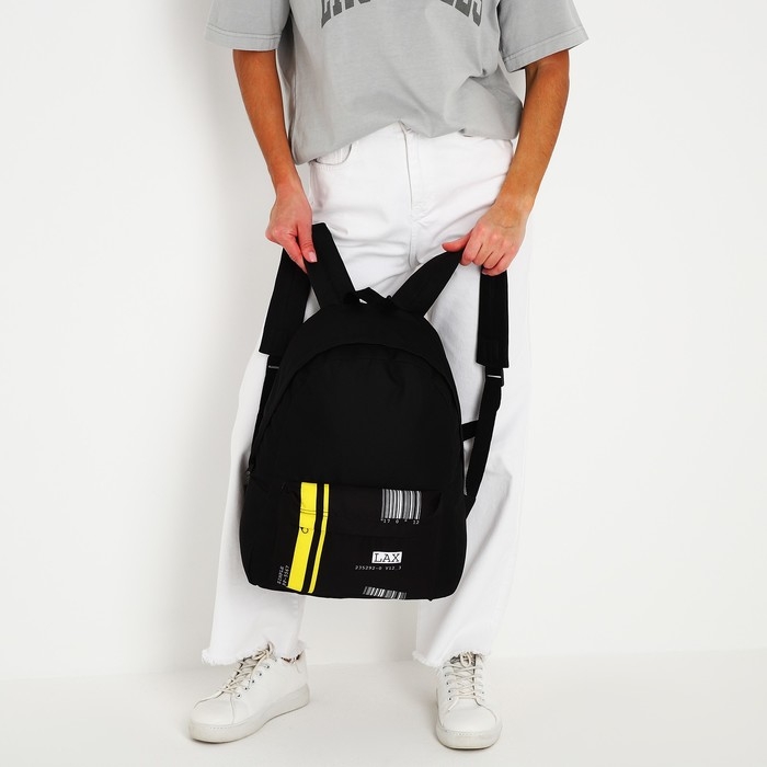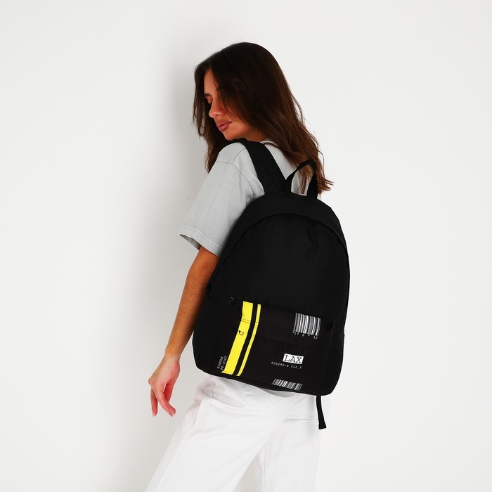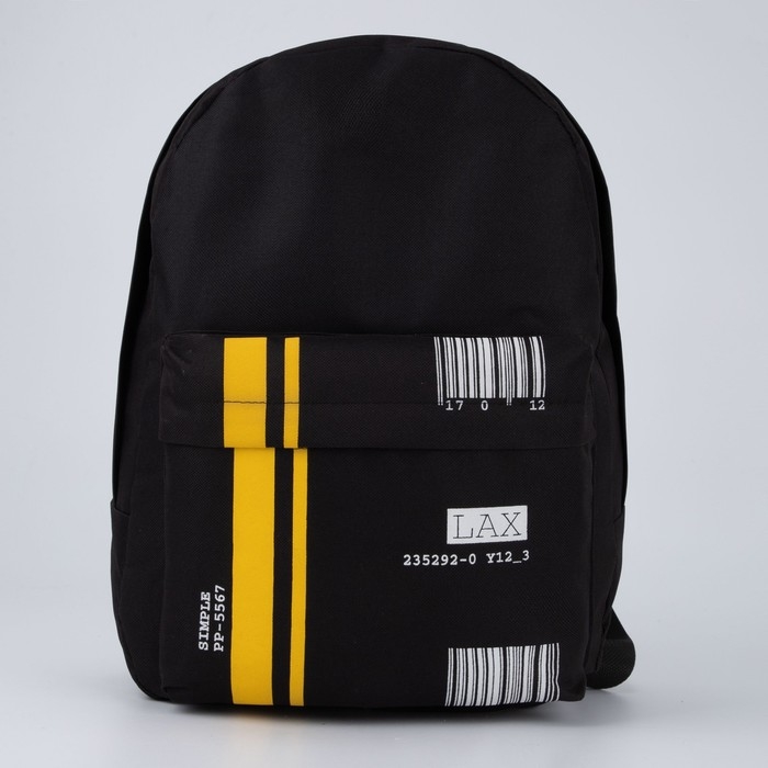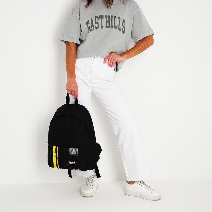 Рюкзак школьный молодёжный «Штрихкод», 33х13х37 см, отдел на молнии, наружный карман, цвет чёрный