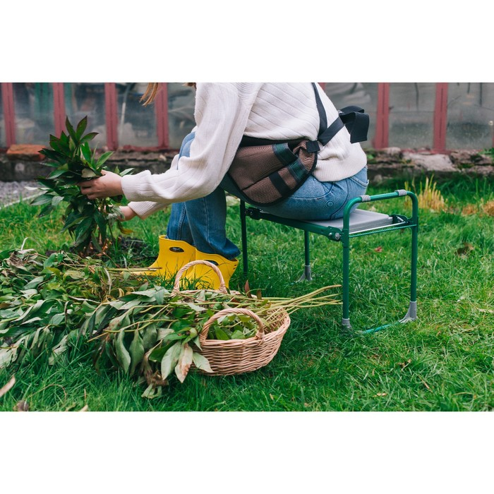Скамейка-перевёртыш для дачи Nika складная 56х30х42.5 см, зелёная, до 100кг, для грядок