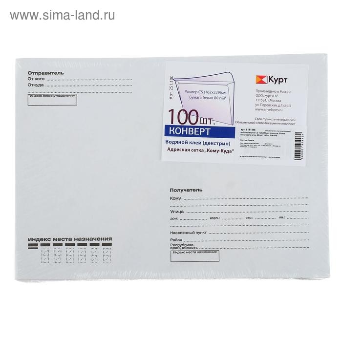Набор конвертов С5 162 х 229 мм, поле "Кому-куда", без окна, клей, 80 г/м2, 100 штук