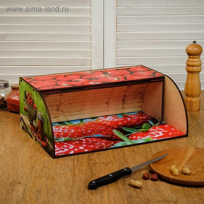 Хлебница деревянная "Клубника садовая", цветная, 38х26х14 см