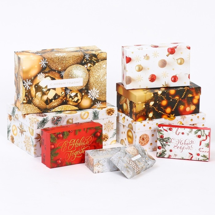 Набор подарочных коробок 10 в 1 «С НГ», 12 х 7 х 4 - 32.5 х 20 х 12.5 см, Новый год