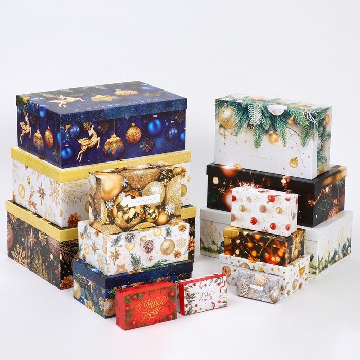 Набор коробок подарочных 15 в 1 «С Новым годом», 12 х 7 х 4 см - 46,6 х 35,2 х 17.5 см, Новый год
