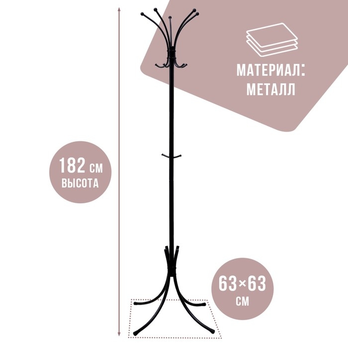 Вешалка напольная «Корона», 63×63×182 см, разборная, цвет чёрный