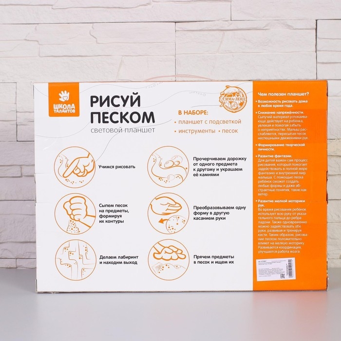 Планшет для рисования песком с цветной подсветкой, 40 × 60 см + гребень и трафарет
