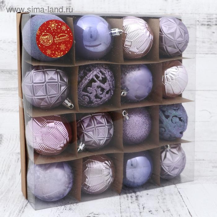 Набор шаров пластик d-6 см, 16 шт "Кэра" сиреневый