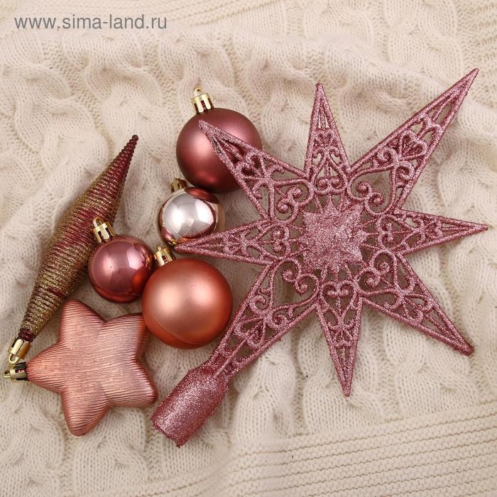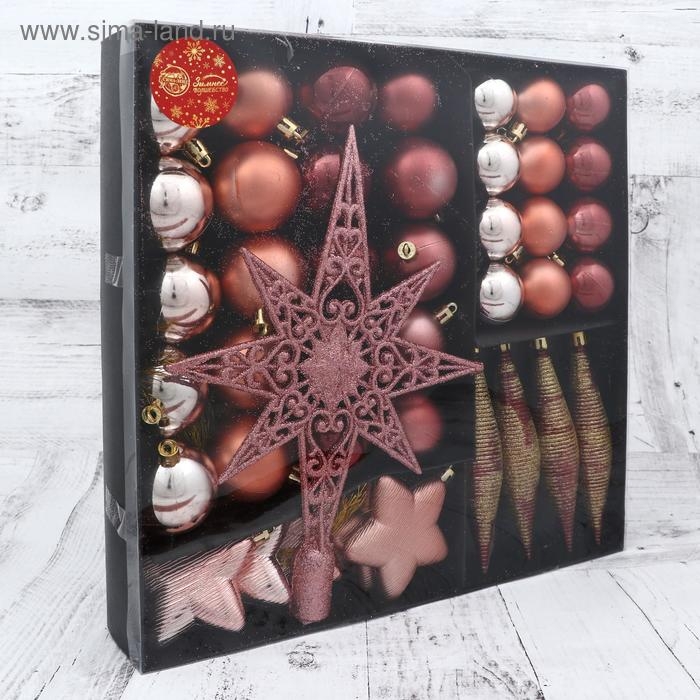 Набор украшений пластик с верхушкой 43 шт "Глория 2" (32 шара, 4 сосульки, 6 звёзд)