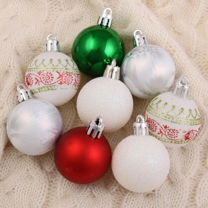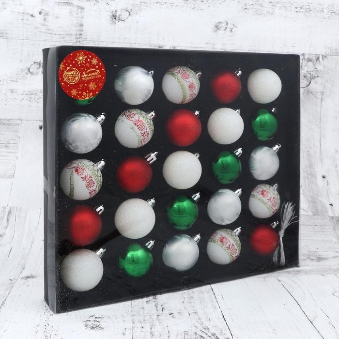 Набор шаров пластик d-4 см, 25 шт "Нембус" белый, красный, зелёный