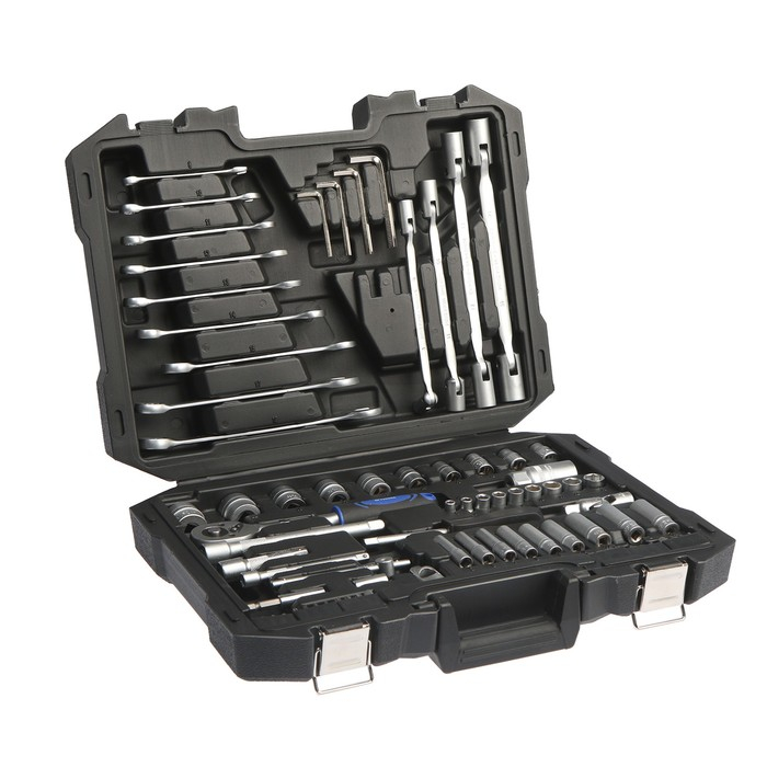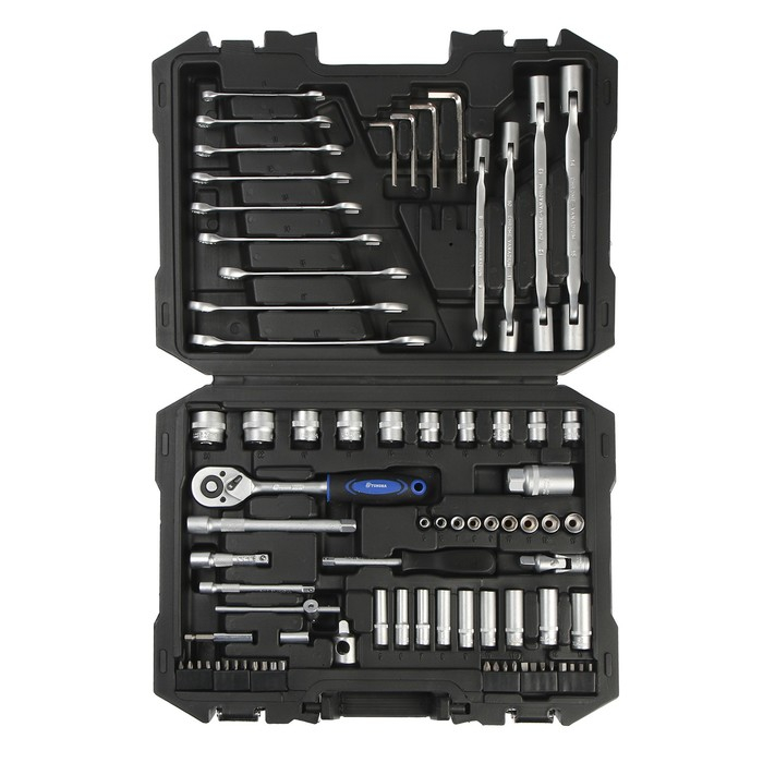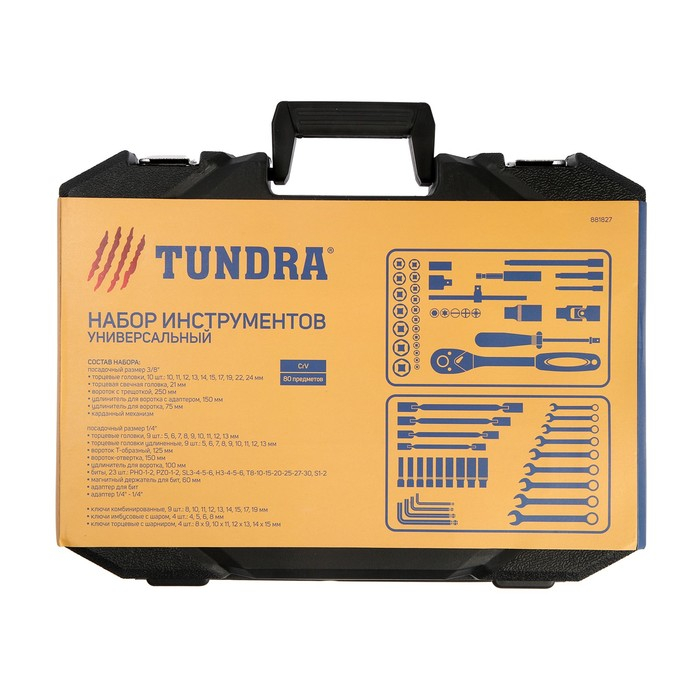 Набор инструментов в кейсе ТУНДРА, автомобильный, CrV, 1/2", 1/4", 3/8", 80 предметов