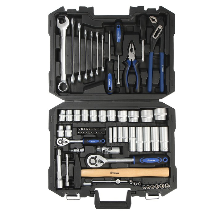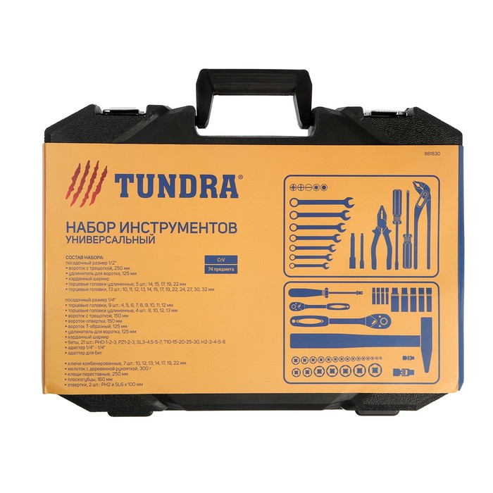 Набор инструментов в кейсе ТУНДРА, автомобильный, CrV, 1/2", 1/4", 74 предмета