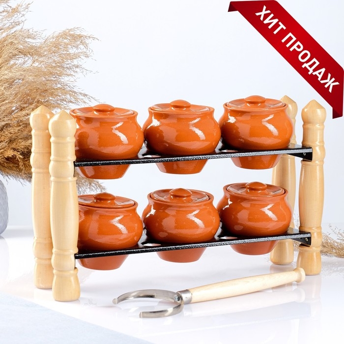 Набор "Вятская керамика №3" 6х0,5 + ухват + полка, терракота