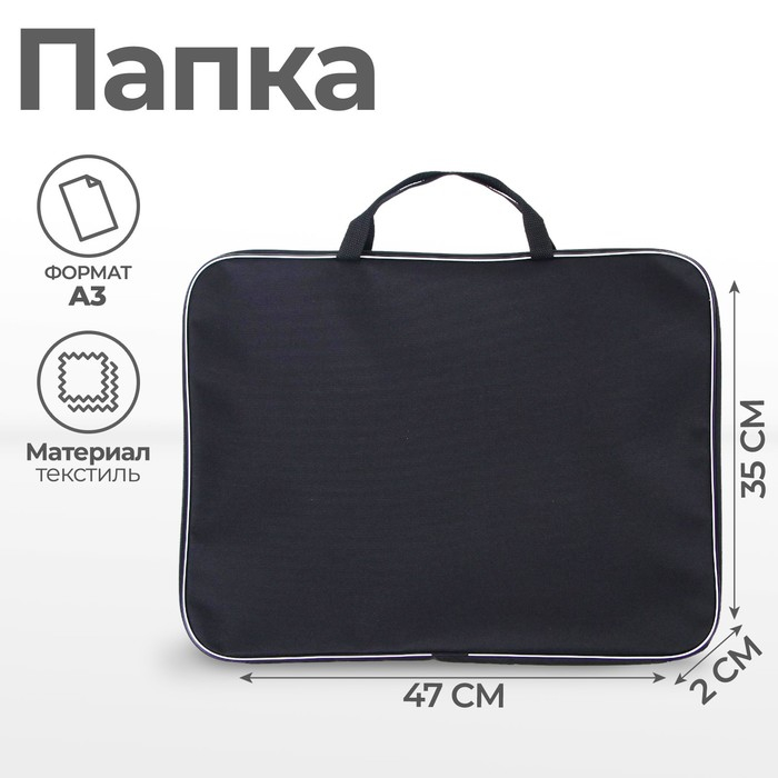 Папка для чертежей и рисунков А3, 470 х 350 х 20 мм, с ручками, текстильная, Calligrata Стандарт, Черная, плотность 600D