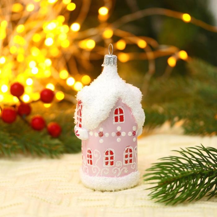 Ёлочная игрушка "Домик" h-9 см, бело-розовый