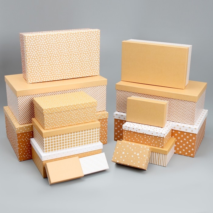 Набор коробок крафт однотонный 15в1 44 х 34 х 15,5 - 11 х 6 х 4 см