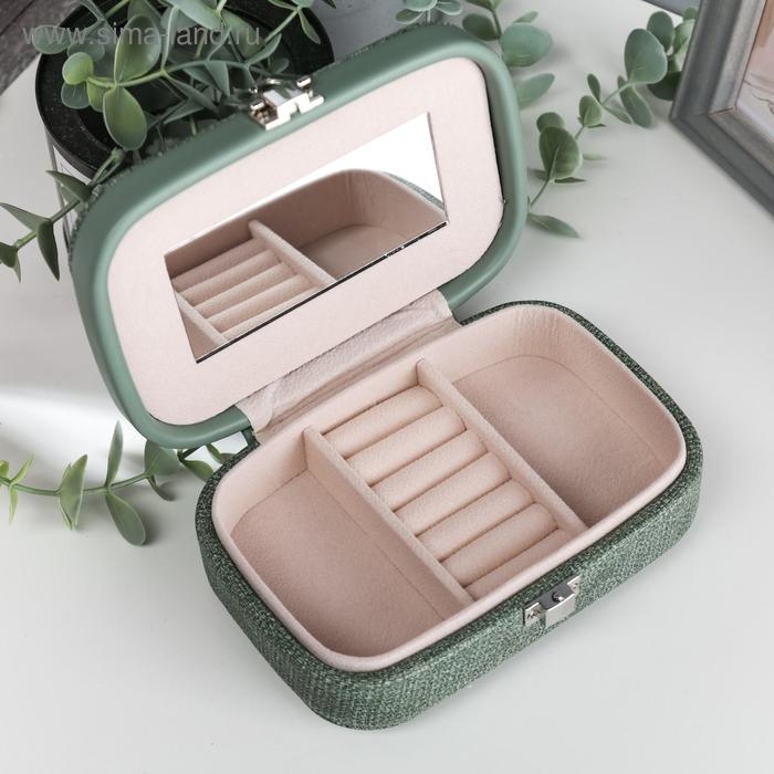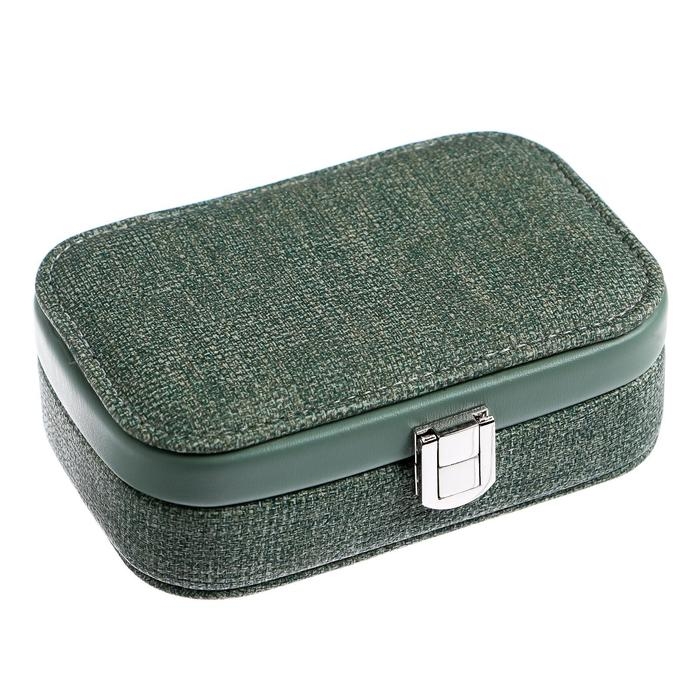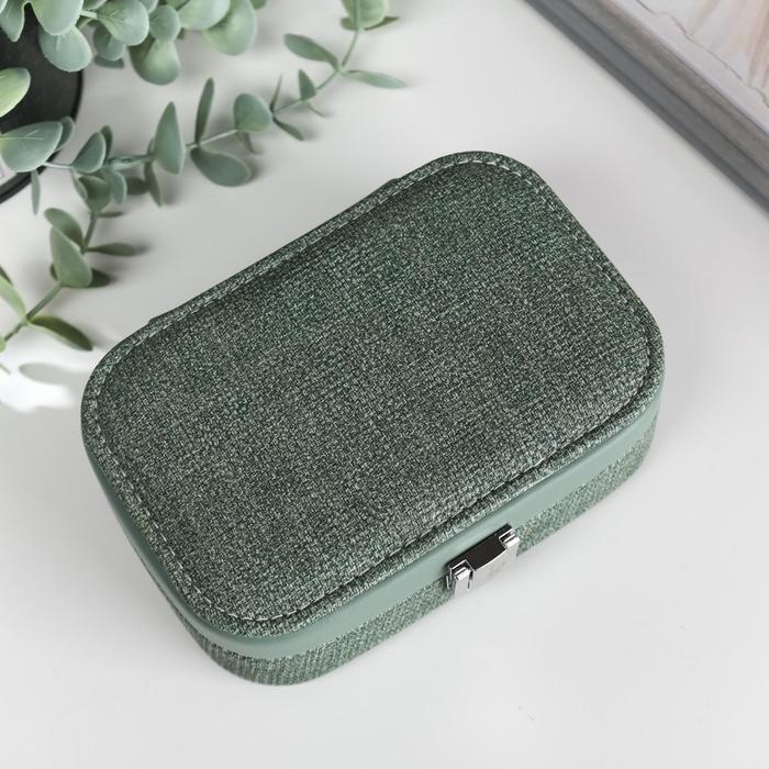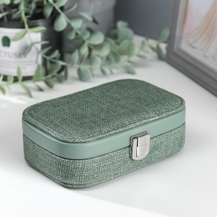 Шкатулка кожзам для украшений "Зелёная" комбинированная 4,5х10х15 см