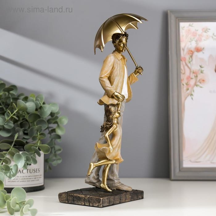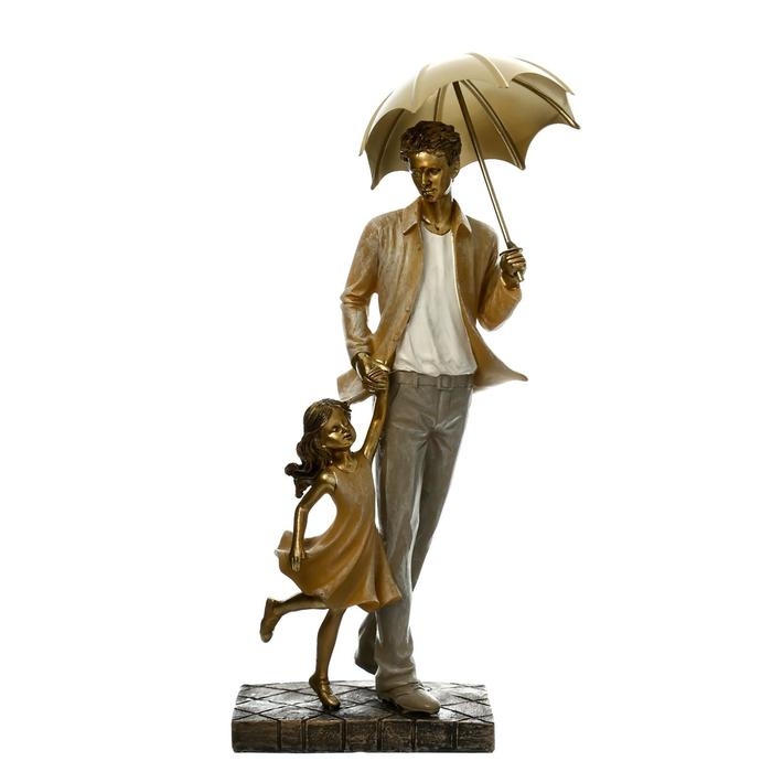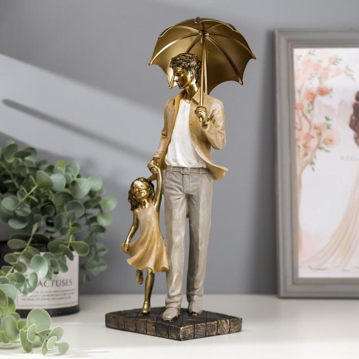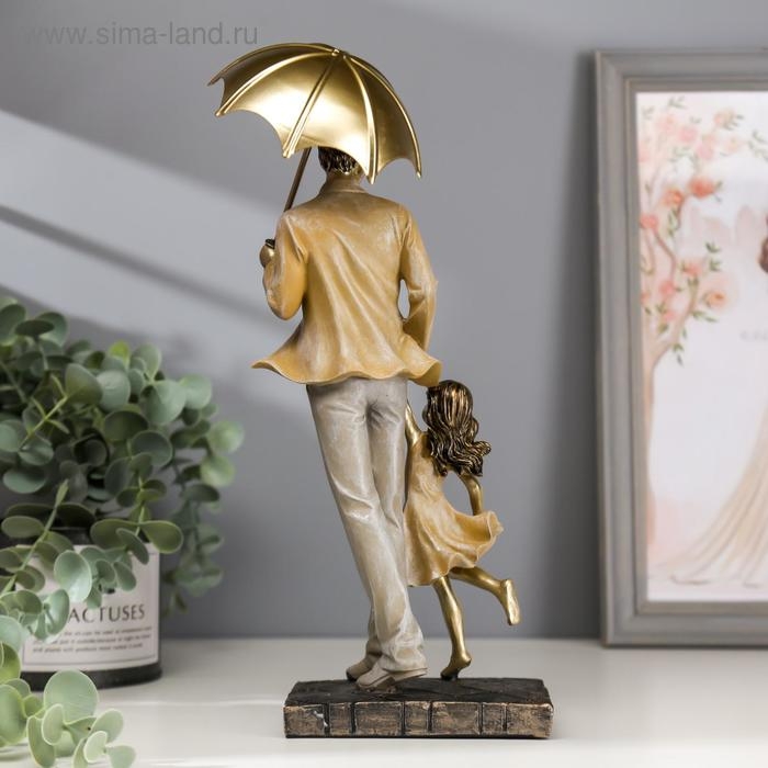 Сувенир полистоун "Папа с дочкой на прогулке под зонтом" бежевый 28х11х8 см