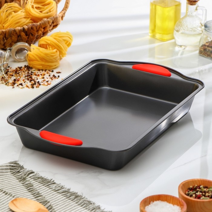 Противень для выпечки Доляна «Софт. Прямоугольник», 40,5×25,5×5,5 см, с силиконовыми ручками, антипригарное покрытие, цвет чёрный