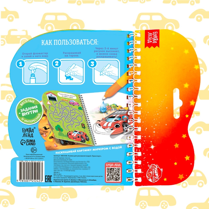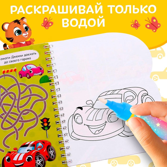 Книжка для рисования водой многоразовая «Транспорт» с водным маркером, 10 стр.
