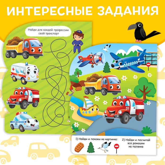 Книга выполнена из плотного картона. Внутри есть 4 страницы для раскрашивания. Во время рисования малыш будет выполнять интересные задания из книжки и выучит разные виды транспорта.