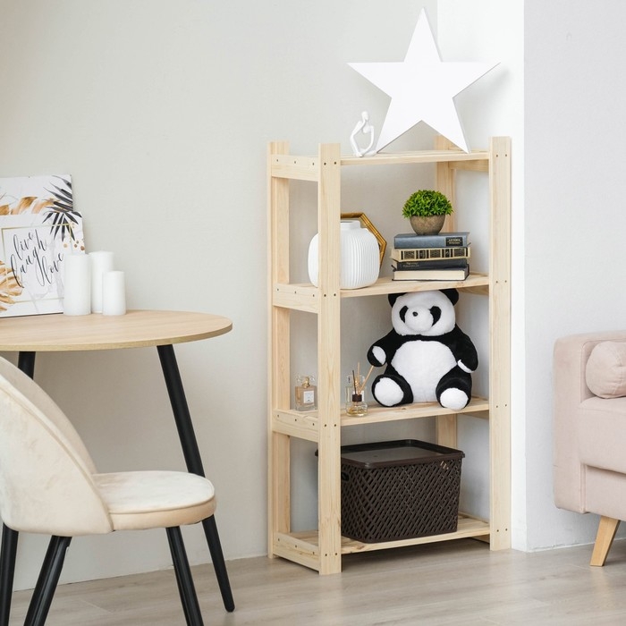 Открытый компактный стеллаж, сделанный из массива хвои, самый бюджетный в нашей серии. Он станет полезной частью гостиной, спальни, детской комнаты, квартиры-студии или офисных помещений.