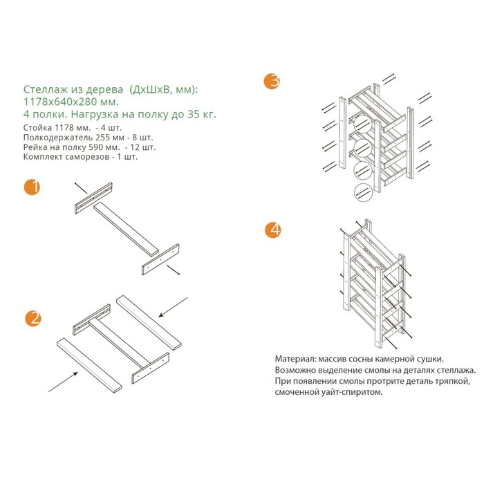 Стеллаж деревянный, 50×35×110см, 4 яруса, "Добропаровъ"