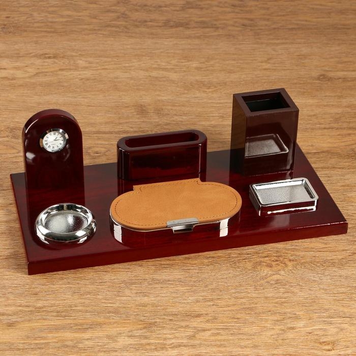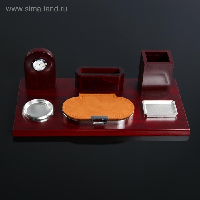 Набор настольный 5в1 с часами, вишня