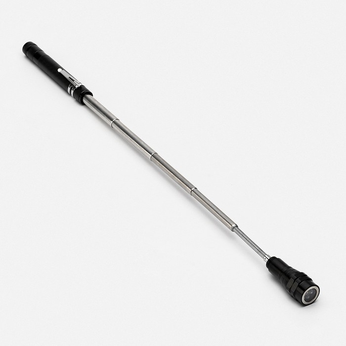 В сложенном состоянии длина магнитного телескопического фонаря составляет 17 см, в полностью разложенном - 56.5 см. Магнитные кольца в верхней и нижней части фонарика позволяют доставать из труднодоступных мест упавшие металлические детали.