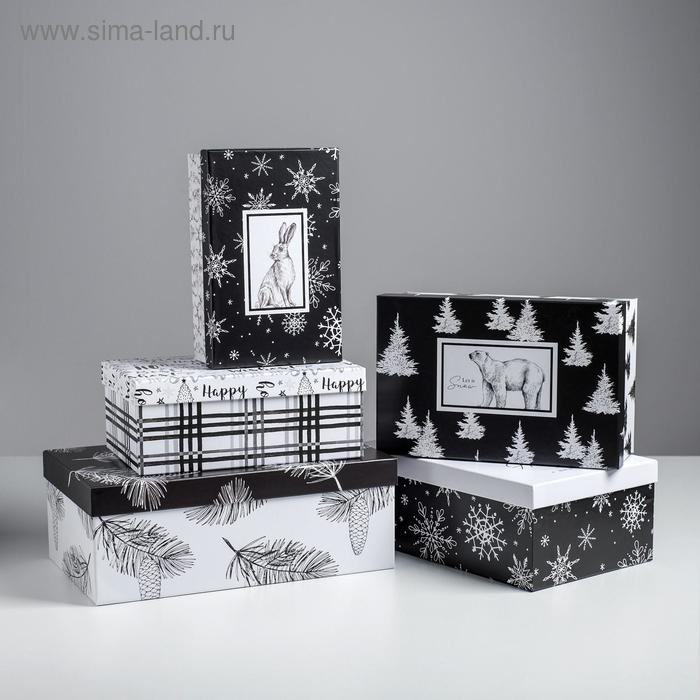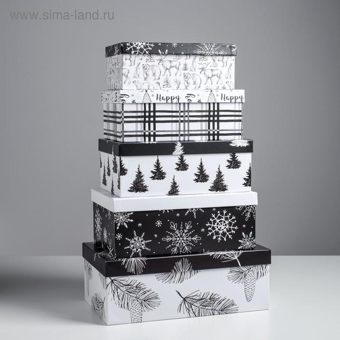 Набор подарочных коробок 5 в 1 «Черно-белый», 32,5 х 20 х 12,5 - 22 х 14 х 8,5 см, Новый год