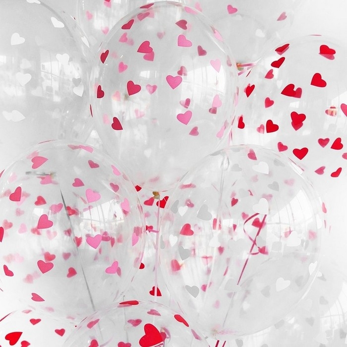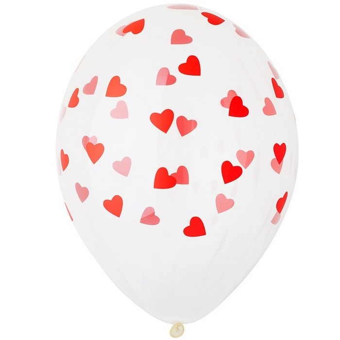 Шар латексный 14" «Сердца красные», кристалл, шелкография, набор 25 шт.