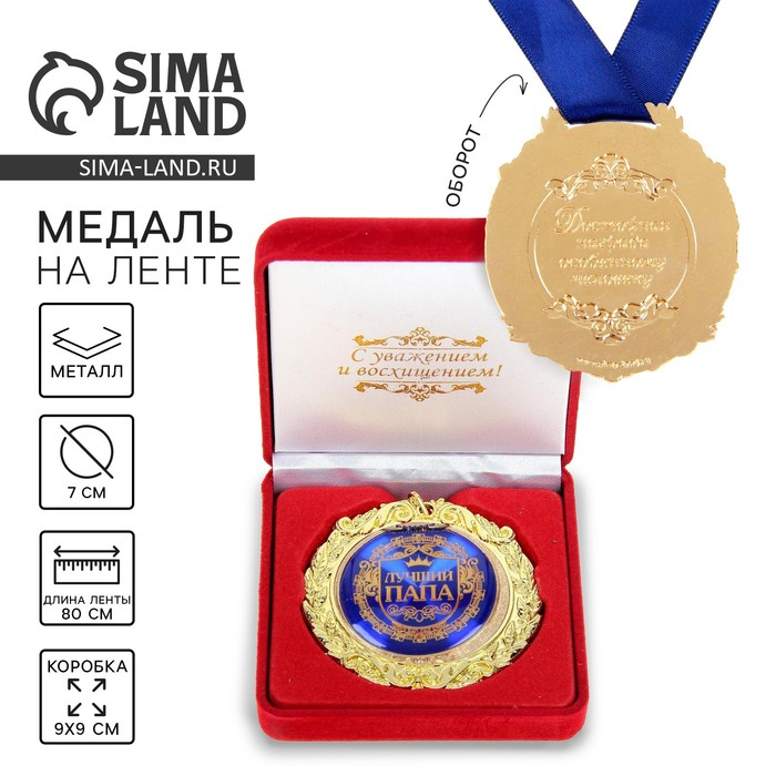 Медаль в бархатной коробке «Лучший папа», 6,3 х 7,2 см