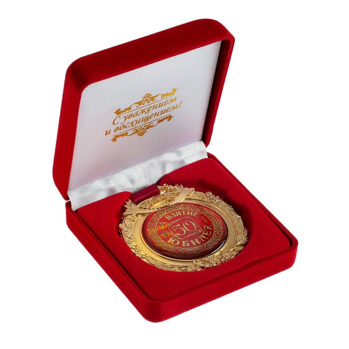 Медаль юбилейная в бархатной коробке «За взятие юбилея 50», d= 6,5 см.