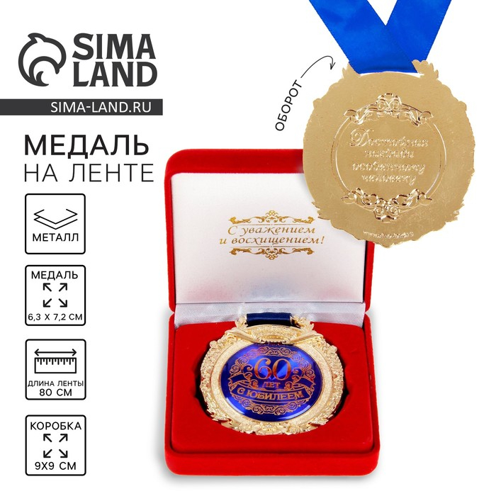 Медаль юбилейная в бархатной коробке «С юбилеем 60 лет», d= 6,5 см.