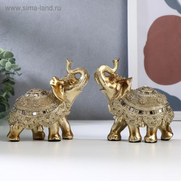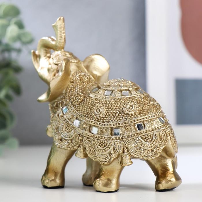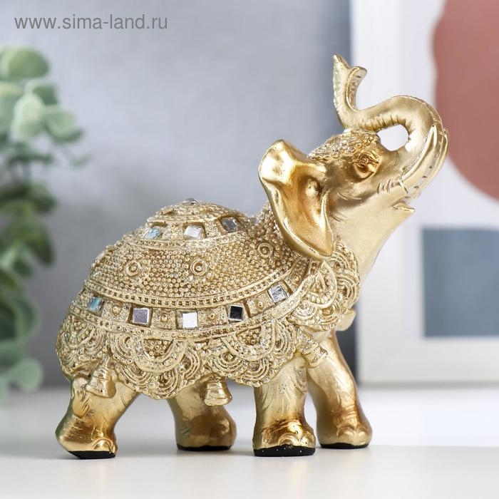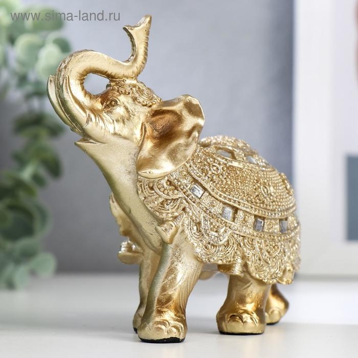 Сувенир полистоун "Золотой слонёнок с попоной из бисера с колокольчиками"МИКС 11,5х11х5,5 см