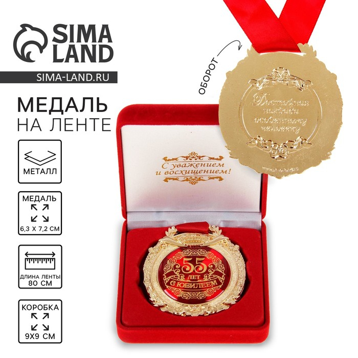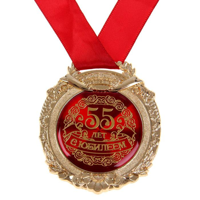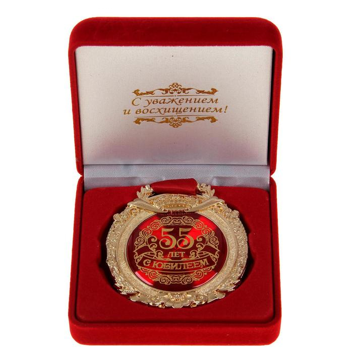 Медаль юбилейная в бархатной коробке «С юбилеем 55 лет», d= 6,5 см.
