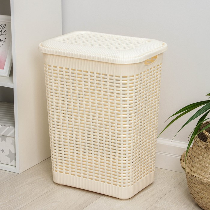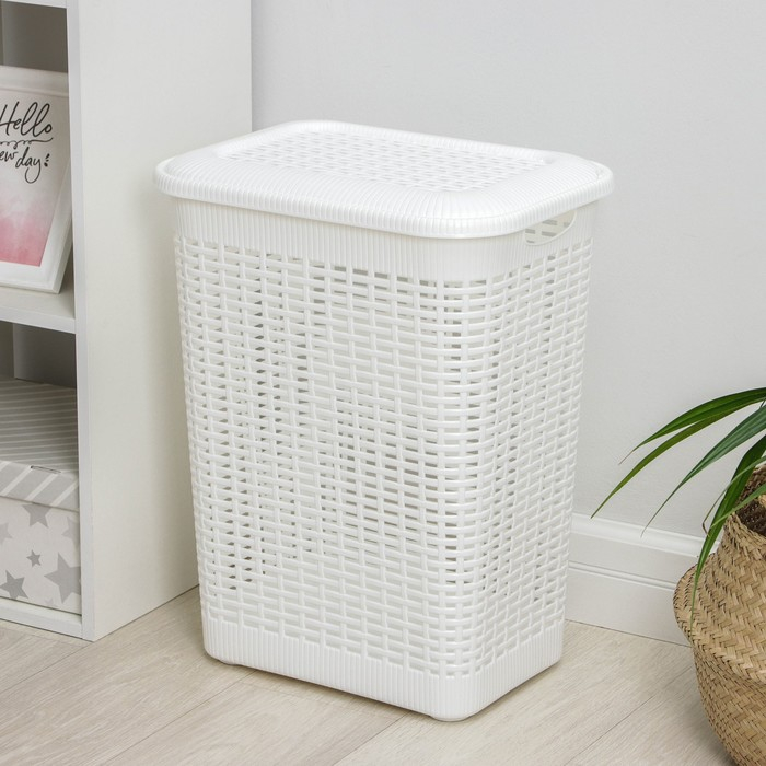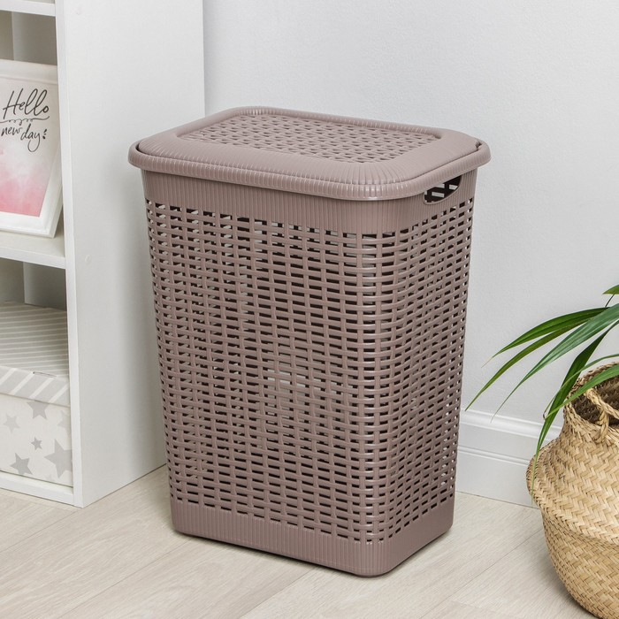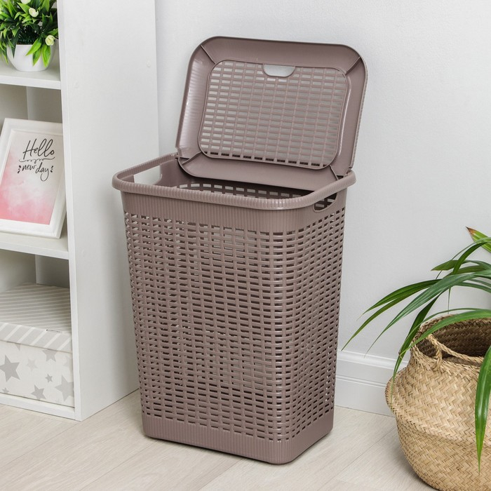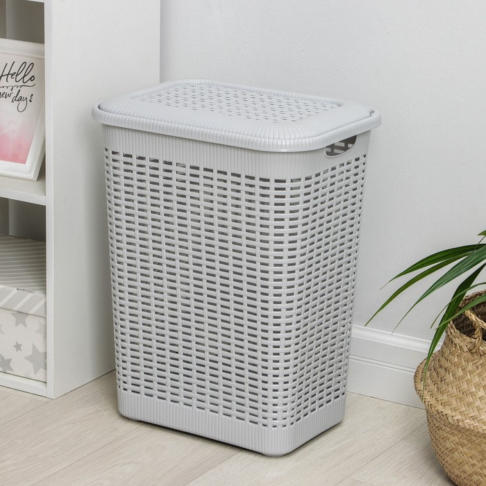 Корзина бельевая с крышкой, 50 л, 42×31×56 см, цвет МИКС