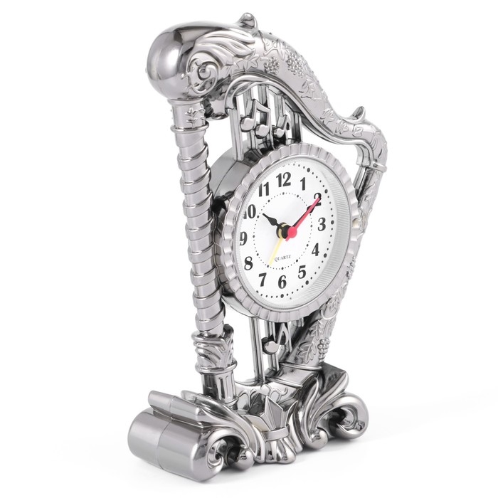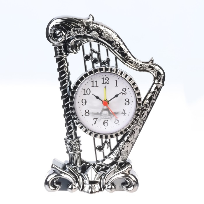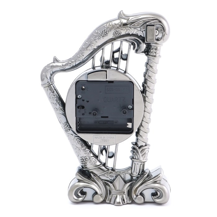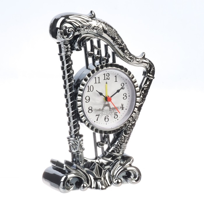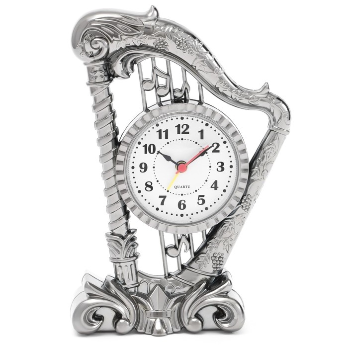 Часы с будильником представлены в классическом дизайне в форме музыкального инструмента - арфы, они отлично впишутся в ваш интерьер. Интерьерные часы станут прекрасным декором для дома и дачи, их можно поставить как на прикроватную тумбочку в спальне, детской комнате, гостиной так и на стол или на комод в зале, холле или на кухне. Будильник настольный имеет кварцевый механизм, который гарантирует высокую точность хода. Часы настольные обладают громким будильником, ребенку и вам будет комфортно просыпаться, на работу и в школу. Будильник на батарейках не требует частой замены батареек благодаря экономичному механизму.