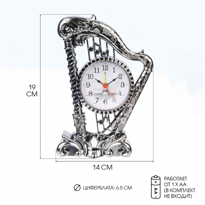 Часы - будильник настольные "Арфа", дискретный ход, циферблат d-6.5 см, 19 х 14 см, АА
