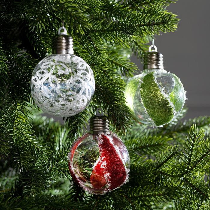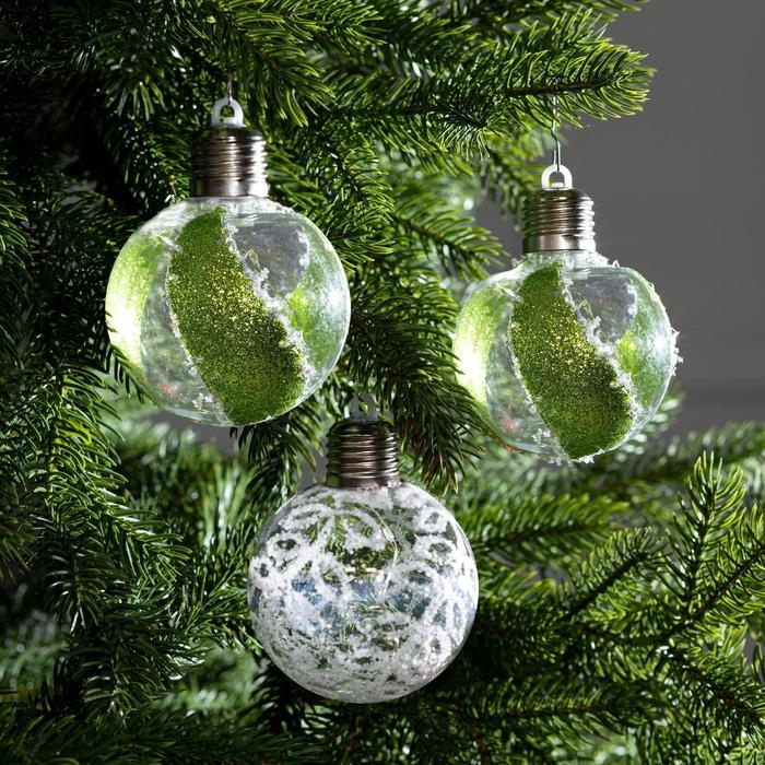 Набор ёлочных шаров «Зимний лес» 3 шт., батарейки, 1 LED, свечение белое