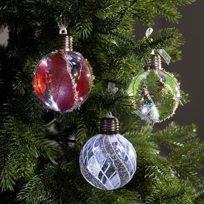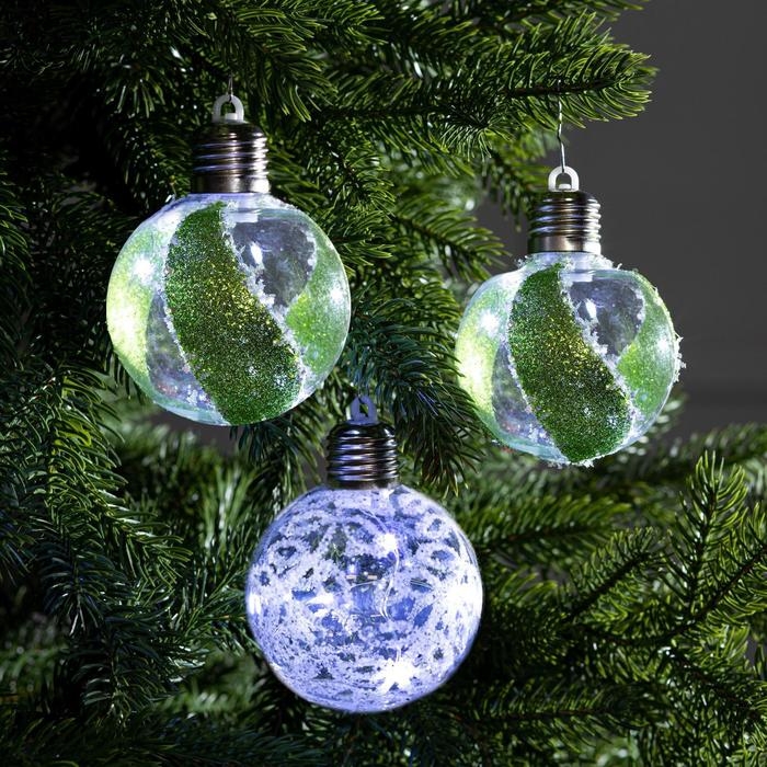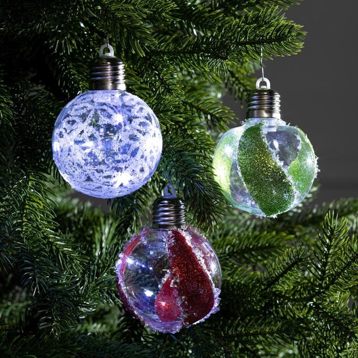 Набор ёлочных шаров «Шары с блёстками» 3 шт., батарейки, 5 LED, свечение белое